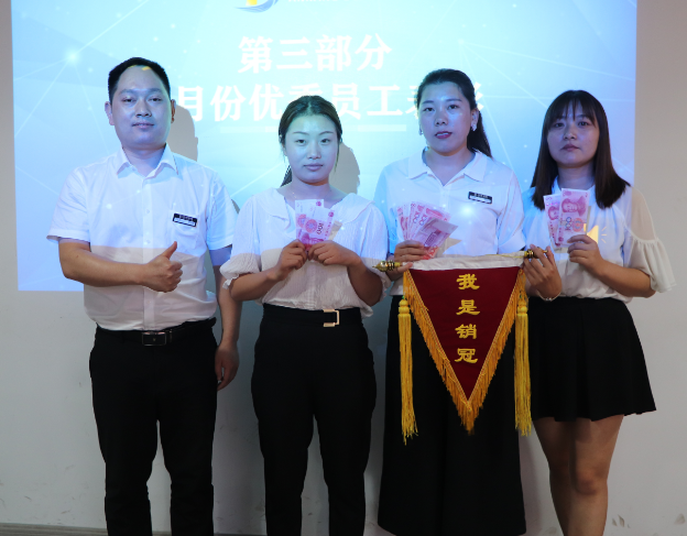 根據(jù)月度考核評(píng)比,最終銷(xiāo)售部鄧良花、張紫玲、陳小夢(mèng)3位家人取得月度銷(xiāo)售冠亞季軍稱(chēng)號(hào);會(huì)計(jì)部焦瑩獲得月度服務(wù)之星獎(jiǎng);人力資源部陳盼、58同鎮(zhèn)渠道部劉山、人事部孔玲獲得首屆抖音大賽冠亞季軍獎(jiǎng);德隆財(cái)稅團(tuán)隊(duì)獲得月度優(yōu)秀團(tuán)隊(duì)獎(jiǎng),由李總為獲獎(jiǎng)家人頒發(fā)榮譽(yù)證書(shū)及獎(jiǎng)金。感動(dòng)來(lái)自平凡,榜樣就在身邊,臺(tái)上的光榮都承載著辛勤和汗水。6月,他們用拼搏贏得了屬于自己的榮耀,鑄成榮譽(yù)高光時(shí)刻?!皟?yōu)秀員工”是公司的最高榮譽(yù),也是對(duì)大家辛勤工作的最大肯定!俗話(huà)說(shuō)“三十六行,行行出狀元”,德隆成立七余年,正是有像你們這樣一批批優(yōu)秀的員工,德隆的事業(yè)才能得以不斷發(fā)展壯大,感謝你們用重復(fù)創(chuàng)造卓越!向你們致敬!