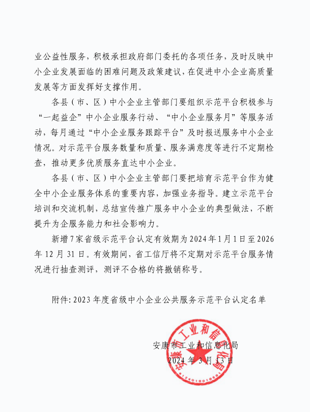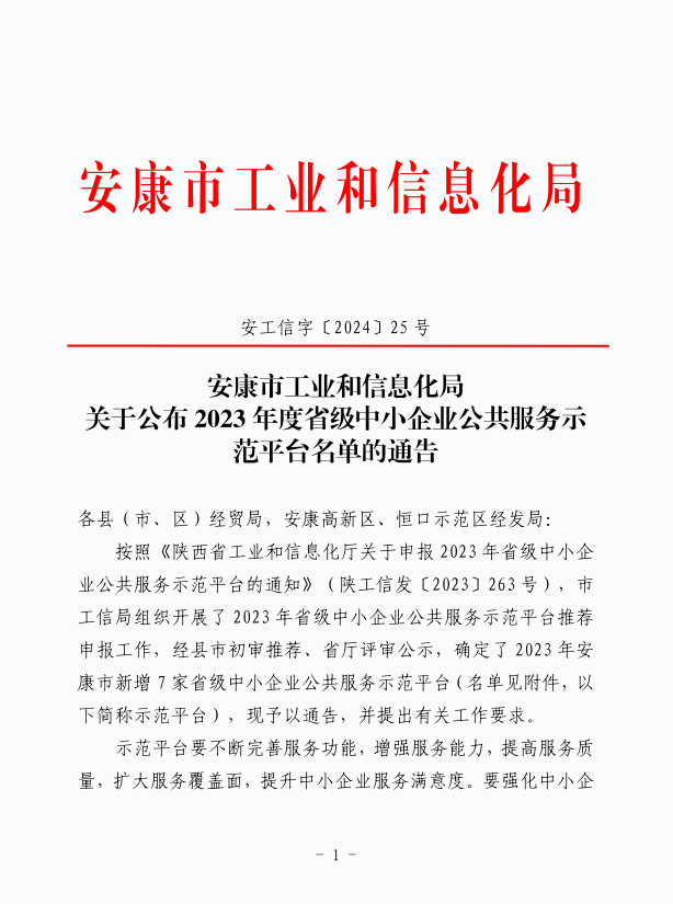 熱烈祝賀安康市德隆企業(yè)管理咨詢有限公司被陜西省工業(yè)和信息化廳認定為“陜西省中小企業(yè)公共服務示范平臺”