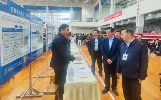 學(xué)院院長(zhǎng)馬恒昌及安康市人社局黨組成員、副局長(zhǎng)張文忠等一行蒞臨招聘會(huì)現(xiàn)場(chǎng)指導(dǎo)工作,與招聘單位面對(duì)面交流,詳細(xì)了解招聘單位的用人需求,聽取用人單位對(duì)我校人才培養(yǎng)質(zhì)量、學(xué)生就業(yè)情況等方面的意見和建議。